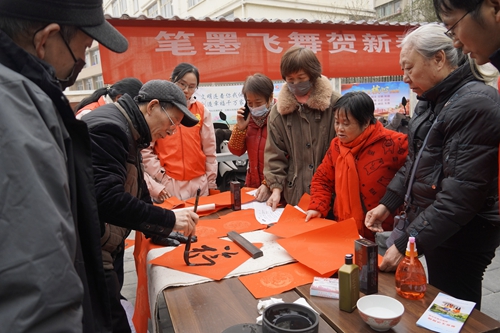 書法愛好者正在為居民書寫春聯 孔祥倩 攝 “快過年了,我們正愁春聯該選什么樣式呢。在這里可以選自己中意的對聯讓老師幫忙寫,求一個好彩頭,真是太好啦。”居民陳女士笑瞇瞇地說道。 1月17日上午,建陽區寶山街道橋南社區聯合建陽區美術館共同舉辦“筆墨飛舞賀新春,文明創建共繁榮”義寫春聯主題黨日活動。 活動現場,書法愛好者們挽袖執筆,揮毫潑墨,神情專注、熱情洋溢地將居民們對迎接新年的祝福和創建文明城市的美好期盼寫在對聯上,送到群眾中。 “祝您福氣多多!”志愿者將寫好的春聯交給居民,迫不及待接過春聯的居民碰到了墨汁,笑嘻嘻將手上沾染的“喜氣”展示出來。在廣場兩側的春聯懸掛晾干區,“健康長壽”的橫批,蘊含著老人們最殷切的希望,社區居民邱老太望著等待晾干的春聯,露出了滿意的微笑。 此次活動共計送出春聯200余副,福字100余份,隨風飄動的春聯、喜氣洋洋的現場,在展現了中國傳統書法藝術的獨特魅力的同時營造了喜慶、溫暖的節日氛圍,為居民們送上了誠摯且溫暖的新春祝福。(建陽區委文明辦 寶山街道 孔祥倩 葉梓妍) |