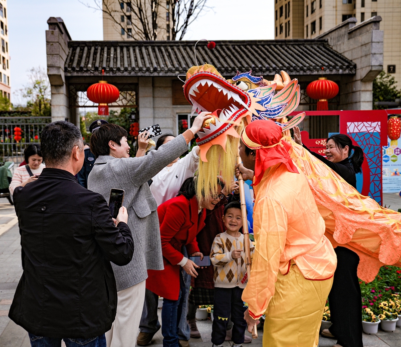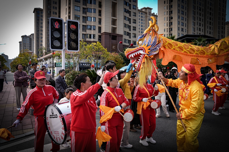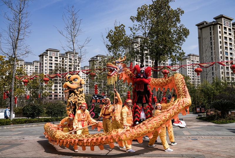 18日,由南平市文化和旅游局主辦,市文化藝術(shù)館承辦的“龍騰盛世 福見(jiàn)南平”——開(kāi)年踩街活動(dòng)在武夷新區(qū)舉行,吸引市民駐足觀看。圖為舞龍表演。劉昕宇 攝