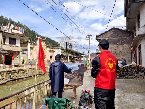畫筆叢林里的一抹志愿紅 吉陽(yáng)鎮(zhèn)供圖 在這場(chǎng)獨(dú)特的文化盛宴背后,可以窺見穿梭在畫筆叢林里的一抹志愿紅。志愿者們分工明確、各司其職,他們有的充當(dāng)臨時(shí)導(dǎo)游,帶著畫家們參觀巧溪村尋找最佳創(chuàng)作點(diǎn)位;有的負(fù)責(zé)畫家寫生現(xiàn)場(chǎng)服務(wù),隨時(shí)做好畫家們寫生創(chuàng)作物料的補(bǔ)充和管理;有的當(dāng)起了裝訂工,保障寫生活動(dòng)后的作品打包;還有的則自覺做好秩序維護(hù)和衛(wèi)生清理工作等。他們用實(shí)際行動(dòng)傳遞著正能量和溫暖,形成了采風(fēng)活動(dòng)上一道靚麗的風(fēng)景線,贏得了畫家們的一致好評(píng)。