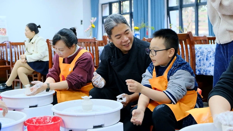 浦城大口窯青白瓷制作技藝傳承人熊文杰教小朋友制作青白瓷。浦城縣融媒體中心供圖 “今天我做的是花瓶,送給媽媽。因為我覺得這個形狀很好看,媽媽會喜歡。”來參加青白瓷陶藝公益課堂的小朋友陳屹皓高興地說道。 為更好地弘揚中華優秀傳統文化,使浦城縣青少年領略非物質文化遺產的獨特魅力,了解非物質文化遺產保護的重要意義。2月20日下午,由浦城縣文體旅局、縣婦聯主辦的“福滿四季·與‘泥’相約·喜迎元宵”青白瓷陶藝公益課在縣文化館舉辦。 活動邀請了浦城大口窯青白瓷制作技藝傳承人熊文杰、熊文慧以及浦城杯聽壺說青白瓷藝學堂的老師們,設置了青白瓷文化課、陶藝體驗課,為大家講解浦城陶瓷技藝的特點和歷史,并帶領學生現場體驗制作陶藝的樂趣。