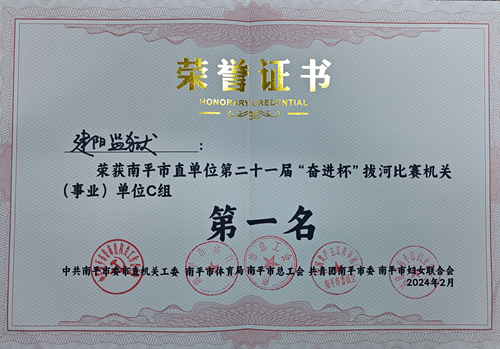 建陽監獄榮獲南平市第二十一屆“奮進杯”拔河比賽第一名 本次拔河比賽,拔出了奮勇爭先的精氣神,充分展現了新時代監獄人民警察良好的精神風貌,進一步增強了隊伍的凝聚力和戰斗力,促使全監廣大民警職工以更團結的作風、更昂揚的斗志、更飽滿的精神做好本職工作,凝心聚力譜寫新時代監獄事業發展新篇章。(圖/文 甘俊俊 廖敏浩) |