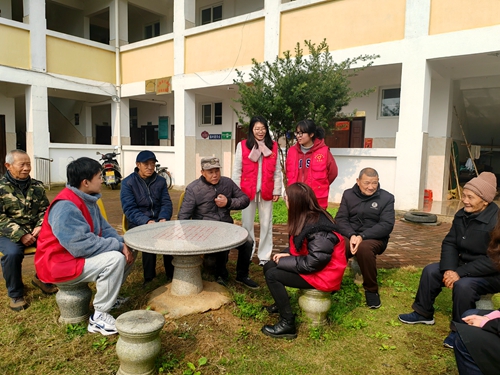 區(qū)紀(jì)委監(jiān)委志愿者打掃院內(nèi)環(huán)境 黃毓婕 攝 在小湖鎮(zhèn)大湖村幸福院,志愿者們拿起掃帚、拖布、抹布等工具,發(fā)揚(yáng)不怕臟、不怕苦、不怕累的精神,對(duì)院內(nèi)環(huán)境進(jìn)行打掃,為老人們營造干凈整潔的生活環(huán)境。 與老人聊家常,聽他們講述自己的故事,了解他們的生活起居和健康狀況,叮囑他們保重身體,志愿者們讓老人們感受到了溫暖和關(guān)愛。一聲聲誠摯的問候,一句句貼心的話語,一個(gè)個(gè)真誠的行動(dòng),給平日里清靜的幸福院帶去了陣陣歡聲笑語。大家用志愿行動(dòng),詮釋了“老吾老以及人之老”的尊老、愛老、敬老傳統(tǒng)美德。