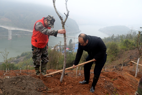 植樹現場 陳倩 攝 近日,正值第46個植樹節之際,南平市自然資源局與南平葫蘆山國有林場聯合開展義務植樹主題活動,助力南平生態文明建設。 陽春三月,正是植樹好時節。南平葫蘆山國有林場“尖峰頂”活動現場,大家揮鋤挖坑、放苗、培土、澆水,勞動場面熱火朝天。在大家的共同努力下,100多株福建山櫻花迎風傲立,為春色增添了一抹盎然生機,又為閩江山上增添新綠,山更青了、天更藍了。 大家紛紛表示,此次義務植樹活動,是閩江之珠繪就多彩畫卷和打造門戶城市醉美屏障的具體行動,是“綠水青山就是金山銀山”理念的具體實踐。(南平市自然資源局 陳登鴻) |