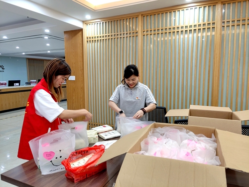 “清涼包”裝袋 吳敏 攝 愛心商鋪表示,后續將提供消暑茶、愛心冰飲、手機充電等服務,解決配送員在等候過程中充電難、喝水難、納涼難等問題,傳播關心關愛勞動者的正能量。 在潭城街道永安社區暖“蜂”驛站,志愿者給環衛工人、外賣員等戶外工作者送去夏日的第一縷“清風”。 活動中,暖“蜂”驛站的志愿者為戶外工作者送去菊花茶,告知他們暖“蜂”驛站內放置了飲用水、創可貼、風油精及人丹等物品,供他們免費使用,并對他們的辛勤付出表示感謝。