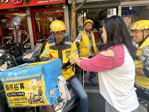 向外賣小哥贈送菊花茶 游征 攝 “這些戶外勞動者工作時飲水量比較大,大多數人都是自己從家里帶水,很不方便,我們提供菊花茶不僅方便他們,還能幫助他們防暑降溫。”永安社區書記黃彩芝說道。 一份關心,一聲問候,讓戶外勞動者實實在在地感受到來自暖“蜂”驛站的暖心關愛。 接下來,潭城街道將繼續延伸服務觸角,聚焦滿足戶外勞動者的多樣化需求,踐行社會主義核心價值觀,用暖心服務凝聚“新”力量,營造和諧社會氛圍。(建陽區委文明辦 潭城街道 晏芷悅 游征) |