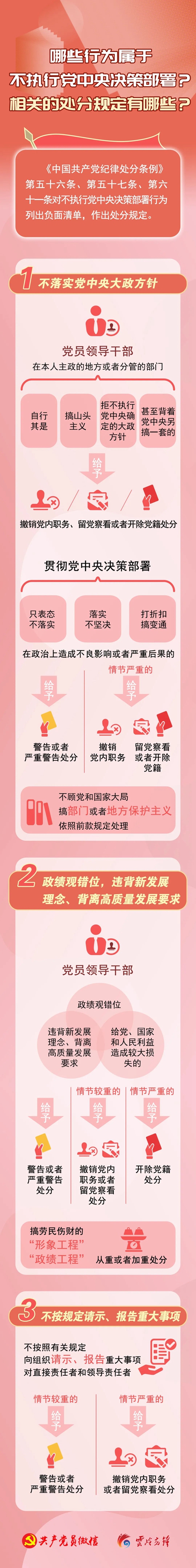 哪些行為屬于不執行黨中央決策部署?相關處分規定是什么?