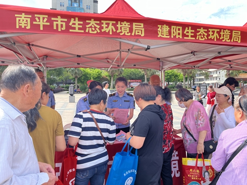 “點題整治”宣傳進社區活動現場 楊倩 攝 5月24日上午,南平市科技活動周主會場科普宣傳活動在建陽區潭山公園廣場舉行。南平市生態環境局、市生態環境保護綜合執法支隊聯合南平市建陽生態環境局、南平市建陽生態環境保護綜合執法大隊開展“整治城市餐飲油煙污染擾民問題改善城市人居環境”宣傳活動,擴大“點題整治”群眾知曉率,提升工作質效,用心用情解決群眾急難愁盼問題。 活動中,市、區兩級生態環境執法人員向市民發放“點題整治”宣傳折頁,“零距離 ”宣傳與群眾生活息息相關的生態環境法律法規,面對面傾聽群眾訴求,深入征集“急難愁盼”問題。就群眾關心的油煙擾民問題,執法人員通過典型案例分析、法律法規解讀等方式,現場為群眾答疑解惑,幫助群眾充分認識到油煙的危害性和治理的必要性,引導廣大市民增強生態文明意識。 下一步,南平市生態環境局聯合市直相關部門將持續推動“點題整治”工作,充分發揮社會監督作用,為市民營造一個清潔、健康、宜居的生活環境,切實提升群眾獲得感、幸福感。(南平市生態環境保護綜合執法支隊 雷雨琴) |