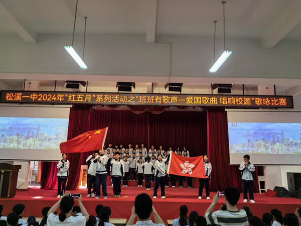 為慶祝中華人民共和國成立75周年,激發廣大青少年愛黨、愛國情懷和責任意識,營造積極向上的學校氛圍。5月28日,松溪縣第一中學開展“班班有歌聲——愛國歌曲 唱響校園”合唱比賽。 活動現場,各班級代表隊依次上臺,他們或激昂高亢,或深情款款,用歌聲表達對祖國的熱愛和對黨的忠誠。比賽中,一首首耳熟能詳的愛國歌曲在校園上空回蕩。《我和我的祖國》、《歌唱祖國》等經典曲目被同學們演繹得淋漓盡致,引發了在場師生的強烈共鳴。各班級不僅展示了出色的歌唱水平,還通過精心編排的舞臺劇、隊形變換等形式,為比賽增添了更多看點。