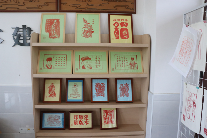 學生在新的百草園參加勞動。南平市委文明辦供圖 為了讓學生對中醫、中藥有更深的認識,學校還會經常請一些老中醫、民間中草藥傳承人以及其它慕名而來的人到校交流中草藥文化,傳播中藥知識。此外,學校還購買了《中醫藥與健康》教學參考書等資料,建立了學習微信群,將中草藥文化列入綜合實踐、校本課程教學內容,從小在學生心底埋下中醫藥振興發展的種子,做活千年醫藥今朝文章。 刻建本、展建本,傳承非遺,增進自信 書寫、校對、修改、雕刻、印刷,這是建陽雕版印刷的主要工序。麻沙中心小學立足建本之鄉的獨特優勢,2020年把建本雕版非遺技藝傳承納入鄉村學校少年宮,設置了專門的建本雕刻教室,課桌即為“刻桌”。