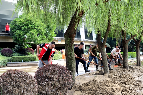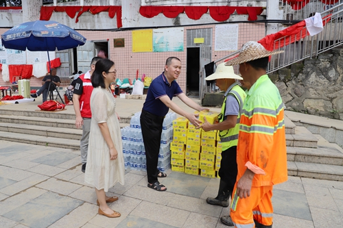 清淤現(xiàn)場(chǎng) “非常感謝社區(qū)給我們送的菊花茶和礦泉水,讓我們感受到了來(lái)自社區(qū)的溫暖。”收到慰問(wèn)品的環(huán)衛(wèi)工人陳大爺說(shuō)道。 近期,隨著連日暴雨的結(jié)束,洪水已逐漸退去,然而對(duì)沿河商鋪和休閑棧道帶來(lái)了嚴(yán)重的破壞,為能快速恢復(fù)商鋪正常營(yíng)業(yè)和棧道的整潔干凈。連日來(lái)環(huán)衛(wèi)工人在艱苦有序的進(jìn)行清淤泥工作,為了表達(dá)對(duì)一線(xiàn)工人的深深敬意和感謝,6月20日上午,四鶴街道晝錦、進(jìn)賢社區(qū)聯(lián)合轄區(qū)共建單位南平市委老干部局到沿江棧道清理淤泥現(xiàn)場(chǎng)慰問(wèn)環(huán)衛(wèi)工人,送上礦泉水50箱、菊花茶30箱等慰問(wèn)品,對(duì)他們辛勤付出表示感謝。