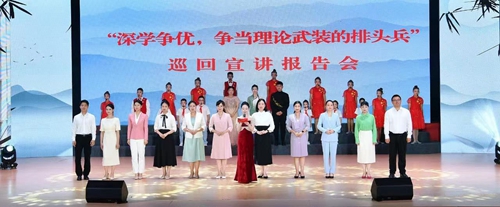 活動現(xiàn)場 政和縣委宣傳部供圖 ?6月27日下午,由南平市委宣傳部主辦,南平市委講師團、政和縣委宣傳部承辦的全市“深學爭優(yōu),爭當理論武裝的排頭兵”巡回宣講報告會在政和七星電影院舉辦,政和縣在家的縣四套班子領導,縣法院院長、檢察院檢察長,縣直各單位主要負責同志,各鄉(xiāng)鎮(zhèn)(街道)宣傳委員、基層宣講員代表們等150余人到場聆聽。 報告會上,11位“閩北講習班”小故事宣講員為與會人員帶來精彩宣講。從光澤縣宣講員高光健講述的《從“屢戰(zhàn)屢敗”到“屢戰(zhàn)屢勝”》故事,到政和縣外屯鄉(xiāng)稠嶺村《從“愁嶺”到“稠嶺”的華麗轉身》,再到南平市加快構建“大武夷文化旅游圈”,努力實現(xiàn)生態(tài)保護、綠色發(fā)展、民生改善相統(tǒng)一的《遇見“環(huán)帶”之美》,一個個生動鮮活的故事,一句句鏗鏘激昂的話語,引發(fā)廣泛共鳴,贏得陣陣掌聲。 宣講員們緊扣新時代新征程教育使命,將南平市“探源”成果活化轉化,以“小話題”講好“大理論”,以“小故事”講活“大道理”,以“小視角”講透“大主題”,推動“閩北講習班”小故事宣講比賽成果轉化,用閩北大地干部群眾“循足跡、悟思想、鑄忠魂、擔使命”的身邊故事和生動實踐,充分體現(xiàn)了廣大黨員干部群眾踏上新征程的奮斗脈搏和幸福底色,讓現(xiàn)場觀眾接受了一次深刻的黨性教育、精神激勵和靈魂洗禮。 大家紛紛表示,整場報告會主題突出、內容豐富,為奮力打造閩浙邊現(xiàn)代化生態(tài)新城凝聚磅礴力量,聆聽后受益匪淺,將牢記囑托、感恩奮進,立足工作實際,推動黨的創(chuàng)新理論入腦入心,為譜寫中國式現(xiàn)代化新篇章作出政和貢獻。(政和縣委宣傳部 余長青 許紹靖) |