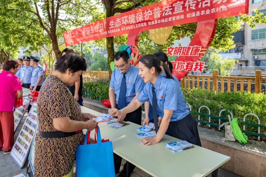 普法宣傳活動(dòng) 松溪縣融媒體供圖 8月7日,松溪縣公安局、法院、檢察院、林業(yè)局、松溪生態(tài)環(huán)境局等部門在文化廣場(chǎng)聯(lián)合舉辦生態(tài)環(huán)境保護(hù)普法宣傳活動(dòng),號(hào)召?gòu)V大市民共同維護(hù)生態(tài)環(huán)境,保護(hù)美好家園,增強(qiáng)全社會(huì)生態(tài)文明意識(shí)。普法宣傳活動(dòng) 松溪縣融媒體供圖 “增強(qiáng)法律意識(shí),不干破壞環(huán)境的違法事。”“綠水青山就是金山銀山,保護(hù)生態(tài)環(huán)境人人有責(zé)。”活動(dòng)現(xiàn)場(chǎng),工作人員通過擺放宣傳展板,發(fā)放普法宣傳手冊(cè)等方式,向過往群眾詳細(xì)講解了生態(tài)環(huán)境保護(hù)的重要性、踐行綠色生活的方式、破壞生態(tài)環(huán)境需要承擔(dān)的法律后果等方面內(nèi)容。同時(shí),工作人員還結(jié)合環(huán)境資源案件進(jìn)行以案釋法、以案析理,耐心細(xì)致地為群眾答疑解惑,引導(dǎo)群眾樹立尊重自然、保護(hù)環(huán)境的生態(tài)文明理念。