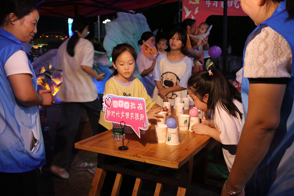 吹球進洞活動 武夷街道供圖 此次活動內(nèi)容豐富多樣,吸引了近300名市民群眾積極參與,現(xiàn)場氣氛熱烈非凡。其中吹球進洞項目充滿趣味,參與者們?nèi)褙炞ⅲ恳粋€細微的動作都牽動著全場的目光,展現(xiàn)出積極向上、勇往直前的精神風貌。“夕扇”制作環(huán)節(jié)獨具匠心,參與者們精心構(gòu)思、用心制作,在一針一線、一筆一劃中感受傳統(tǒng)文化的獨特魅力,一把把精美的扇子不僅帶來了夏日的清涼,更傳遞著傳統(tǒng)文化的韻味。此外,主題打卡板也成為活動的一大亮點,其精美的設計和富有寓意的圖案吸引著市民群眾紛紛駐足,大家在此留下了美好的回憶瞬間,記錄下這個特殊而難忘的七夕時刻。