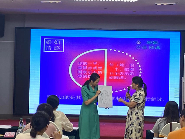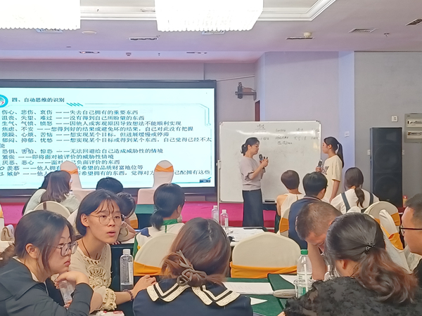 學(xué)員們在課堂上積極討論 沈立瑤 供圖 培訓(xùn)邀請了國家二級心理咨詢師鄭建明與傅虹蘋前來授課。鄭建明老師講授繪畫心理學(xué),這是一種互動性、體驗性及對人群的聯(lián)結(jié)性更加凸顯的教學(xué)方式。通過實際案例,深入淺出地闡釋了繪畫心理學(xué)的基本理論及在咨詢過程中的應(yīng)用,相較于傳統(tǒng)課堂對抽象理論知識的講授與學(xué)習(xí),繪畫心理學(xué)更注重回歸到每個人的真實體驗。傅虹蘋老師介紹認知行為療法,通過通俗易懂的語句和例子相結(jié)合,讓學(xué)員們更好地察覺自我,在感知、思考、行動的時候能準(zhǔn)確地發(fā)現(xiàn)自我。課堂上,學(xué)員們積極配合老師,并提出所遇到的困惑和問題,老師耐心詳盡解答。