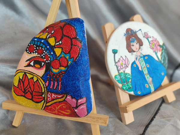 京劇臉譜 愛此一拳石,玲瓏出自然。石頭,既可用于鋪路、修橋、建房,又可用于雕塑、把玩、觀賞,人類文明與石頭始終緊密相連。浦城縣石陂中心小學以“石”為媒,深挖石品格,做足石文化,精心打造“石頭路”“石頭景”“石頭課”,使學生目之所及、足之所涉、耳之所聞都能夠感受到濃厚的石頭文化熏陶。 2018年,浦城縣石陂中心小學開設了“彩繪石頭,創意無限”特色石頭畫課程,以“石頭”為媒,探索鄉土文化與美術相融合,引導學生充分發揮自己的想象力,創作富有創意和個性的石頭畫作品。久而久之,一屆屆學生創作的石頭畫精品不僅裝點了校園環境,還成為了學校對外文化交流的重要載體。 畫石頭,石上風景活靈活現。 “石頭既可以當作畫布,用于作畫;也可以當做筆墨,用于入畫。這里的每幅石頭作品都展現了孩子們豐富的想象力。”石陂中心小學石頭課教師楊麗蓉介紹道。