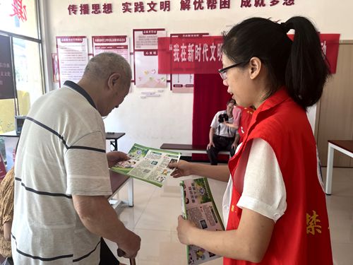 現場發放禁毒反詐宣傳單 葉玉芬 攝 與此同時,綜治辦志愿者一邊友好地和老人們聊天,了解他們的生活近況,一邊發放宣傳品,為老人們深入淺出地講解了反詐、反邪、禁毒的知識和預防方法及處理舉報方式,進一步加深了群眾對反詐、反邪、禁毒的認識,引導群眾自覺維護自身安全。