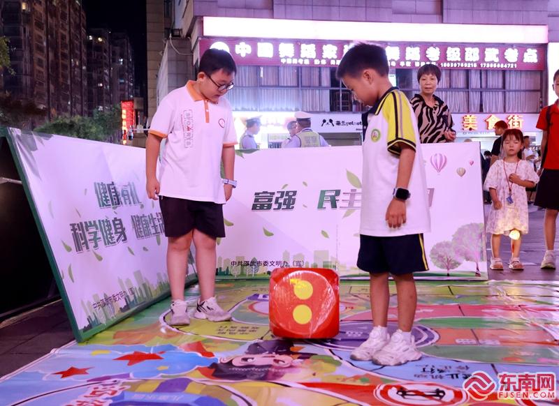 市民參與文明飛行棋盤 東南網記者 肖練冰 攝 活動現場還設有花燈DIY區、互動區、簽名區等,市民可體驗制作手工花燈,參與“文明出行”“網絡文明”“拒絕浪費”超大飛行棋盤和傳統中秋博餅游戲。 本次活動由中共南平市委文明辦,中共邵武市委宣傳部、中共邵武市委文明辦、邵武市文化體育和旅游局、共青團邵武市委員會承辦,昭陽街道黨工委、邵武市三角戲儺舞民俗文化研究中心協辦。