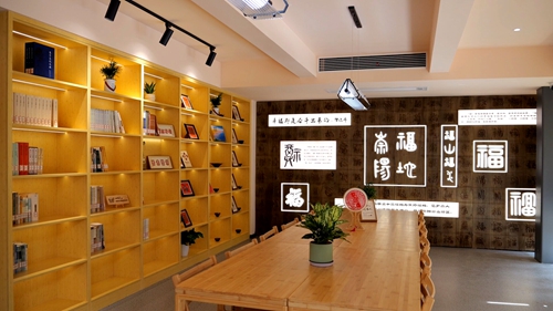 特色“福”文化展示區 張少杰 攝 “走進這個書吧我感覺特別舒適、放松,這里的裝修特別好,我就想著以后可以經常來看看書。”前來參觀的居民伊瑋雯對記者說。 崇陽街道新時代文明實踐所·崇陽公益書吧作為一項文化惠民項目,是傳統閱讀陣地的現代延伸和有益補充。崇陽街道新時代文明實踐所整合潭陽書舍·公益書吧、文體活動中心、廉耕文化基地等資源,全面開展新時代文明實踐活動。