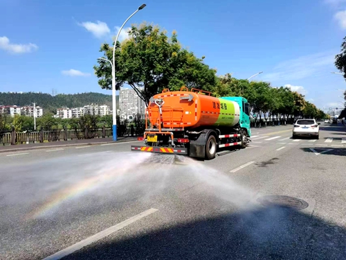 機械化清洗主次干道 建陽區城管局 供圖 洗掃車、灑水車、人工抱管高壓水槍……在潭城的大街小巷,隨處可見多種形式的機械化環衛車輛,配合環衛工人忙碌的身影,有序開展路面清洗作業。 入秋以來,落葉揚塵增多,為全力推動城市綠色高質量發展,進一步做好大氣污染防治工作,提高道路深度保潔作業標準,提升城市潔凈度、清爽度,真正做到“路見底色、墻見本色、車過無塵”,建陽區城市管理和綜合執法局用好精細化管理“繡花針”,穿起文明城市“千條線”,一鍵開啟“洗城”模式,采取“洗、掃、沖、灑”相結合的作業方式,優化城市環境衛生質量,增添清新建陽“靚色”,將常態化長效化全國文明城市創建工作走深走實。 全員上馬無縫隙。400余名環衛工人全部上崗在崗,結合日常網格化巡查工作機制,避開交通高峰期時間段,合理化解班組、班次,保證清洗覆蓋轄區32條主次干道、背街小巷。針對機械設備觸及不到的雨水箅進口、果皮箱底部、馬路緣石、交通護欄,以及公交車站點等公共設施、區域,進行人工抱管沖洗。