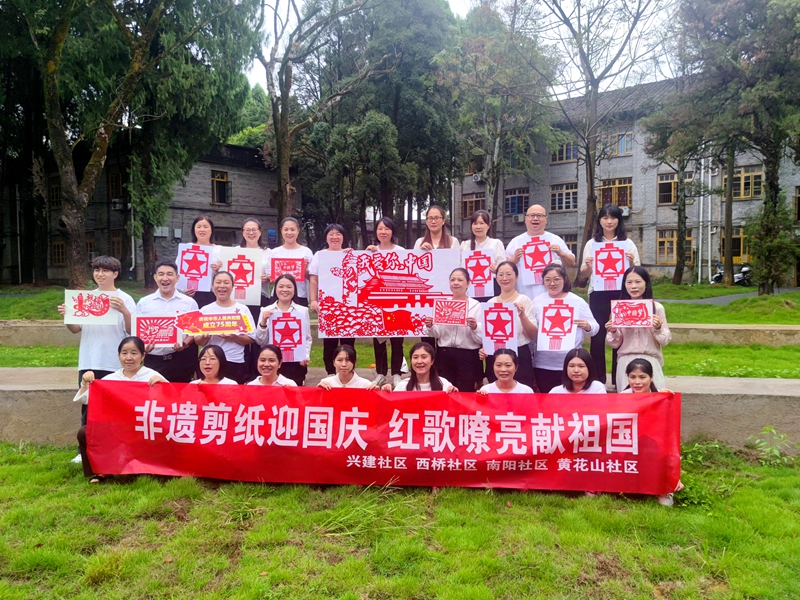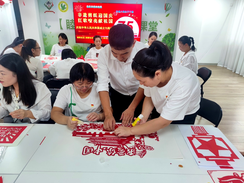 合作剪紙 西橋社區 供圖 為慶祝中華人民共和國成立75周年,弘揚深厚的愛國主義精神,促進社區間的深入交流與理解,同時豐富社區工作人員的文化生活,2024年9月24日下午,建陽區寶山街道南陽社區、黃花山社區、興建社區與西橋社區共同策劃并舉辦了“非遺剪紙迎國慶 紅歌嘹亮獻祖國”慶祝中華人民共和國成立75周年活動。