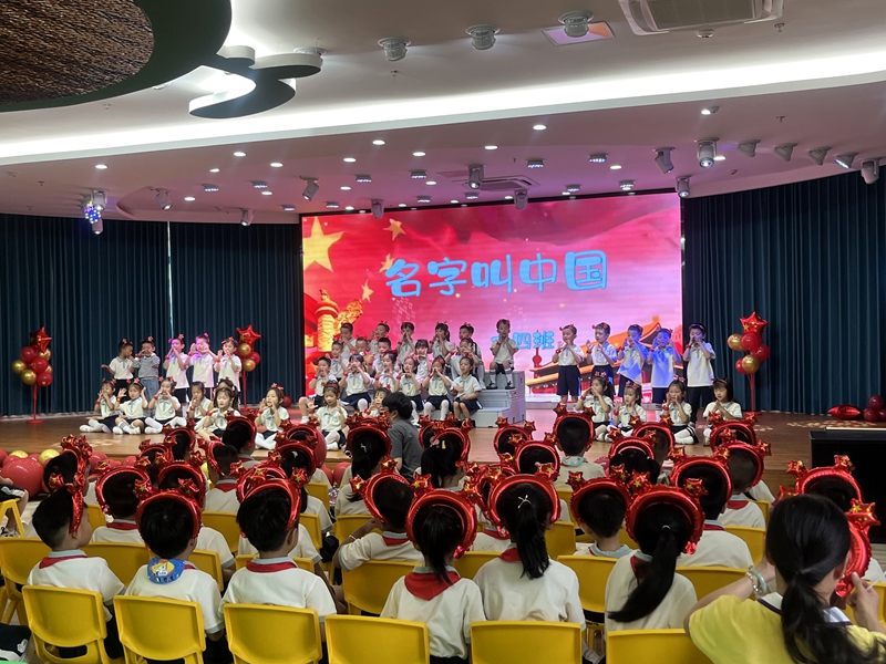 舞蹈表演《名字叫中國》 活動以老師熱情洋溢的舞蹈《我們都是追夢人》開場,瞬間點燃現場氛圍。隨后,小朋友們通過精心編排的舞蹈《娃哈哈》《紅星閃閃》《祖國祖國我愛你》《名字叫中國》等經典曲目向祖國獻禮,而教師代表發表演講《如果信仰有顏色》,深刻表達了對國家的忠誠與熱愛。最后,活動在全體人員的大合唱《我和我的祖國》中推向高潮,大家齊聲歌唱,激昂的歌聲回蕩在整個會場。