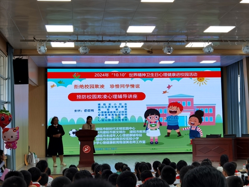 專題講座現場 林建 攝 在專題講座中,建甌市未成年人心理健康輔導站志愿者團隊走進實驗教育總校實驗小學,引導學生通過校園心理劇表演的方式對校園欺凌行為和心理狀態進行探討,讓學生扮演不同的角色,體驗不同的心境,正確處理和解決同學之間的矛盾糾紛,珍惜同學友誼,預防和杜絕和校園欺凌。整場活動語言通俗易懂,感染力強,孩子們認真聽講、積極互動,氣氛十分活躍,現場掌聲連連。活動最后,主講老師還帶領大家宣誓并呼吁同學們拒絕成為欺凌者、拒絕成為附和者和冷眼旁觀者。 此次活動圍繞“共建共治共享、同心健心安心”這一主題,以喜聞樂見的方式廣泛開展精神衛生宣傳,營造了濃厚的精神衛生和心理健康科普宣傳氛圍,有效提高了廣大市民和中小學生的精神衛生和心理健康意識。(建甌市未成年人心理健康輔導站 詹小壩 林建) |