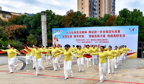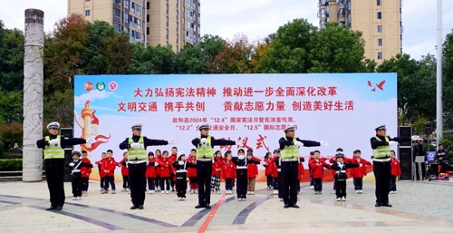 交通手勢操 魏樂 攝 12月3日,政和縣在市民廣場舉行以“大力弘揚憲法精神,推動進一步全面深化改革”為主題的“12.4”國家憲法日暨憲法宣傳周、“12.2”全國交通安全日、“12.5”國際志愿者日宣傳活動啟動儀式。 活動現(xiàn)場,全縣各單位工作人員結(jié)合各自部門的工作特色,通過發(fā)放宣傳冊及紀念品、展示知識展板、有獎問答等方式,向市民宣傳《中華人民共和國憲法》《中華人民共和國民法典》《中華人民共和國婦女權(quán)益保障法》以及道路交通安全、消防、禁毒、反詐等與百姓日常緊密相關(guān)的法律法規(guī),并對這些法律法規(guī)進行詳細解讀。