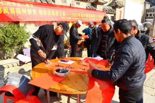 活動現(xiàn)場 活動現(xiàn)場熱鬧非凡,書法老師們挽袖執(zhí)筆,揮毫潑墨,不一會兒寓意吉祥的新春祝福躍然紙上,飽含幸福吉祥,寄托著辭舊迎新、接福納祥的美好愿望,為即將到來的春節(jié)增添了濃濃的喜慶氛圍。村民們拿著紅紅火火的春聯(lián)和福字,臉上洋溢著喜悅的笑容,紛紛表示:“這樣的春聯(lián)太有意義了,還是手寫的春聯(lián)更有年味兒。”