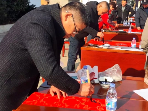 書法老師為群眾現(xiàn)場書寫對聯(lián)和福字 活動現(xiàn)場,翰墨添酒香飄字里紙間,酒墨飄香,營造出一種別樣的新春喜慶及群眾喜聞樂見年節(jié)楹聯(lián)文化氛圍。縣書法協(xié)會的老師們齊聚一堂,他們揮毫潑墨,筆走龍蛇,為群眾現(xiàn)場書寫寓意吉祥、飽含祝福的對聯(lián)和福字。一幅幅春聯(lián)和福字不僅展現(xiàn)了中華書法的獨特魅力,更在字里行間弘揚了年文化、福文化,傳遞著新年的喜慶與祝福。群眾們紛紛圍在書法老師們周圍,欣賞他們的精湛技藝,并領(lǐng)取自己心儀的春聯(lián)和福字,臉上洋溢著幸福的笑容。 除了書寫春聯(lián)和福字外,本次活動還組織了豐富多彩的賞年畫環(huán)節(jié)。一幅幅精美的年畫作品,以其獨特的藝術(shù)風格和深厚的文化內(nèi)涵,吸引了眾多參與者的目光。大家駐足欣賞,細細品味,感受著傳統(tǒng)藝術(shù)的魅力與傳承的力量。