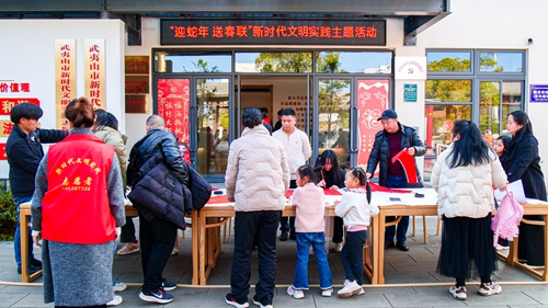 “迎蛇年 送春聯(lián)”文明實(shí)踐活動(dòng)。武夷山市委文明辦供圖 在武夷山市社會福利中心,志愿者們?yōu)轲B(yǎng)老院的老人們帶來了精彩的文藝表演、年畫展示以及毛巾、手電筒等各類小禮品。此外,還在現(xiàn)場與老人們一起包餃子,嘮家常,讓老人們在溫馨歡樂的氛圍中感受到家的溫暖,增強(qiáng)了他們的幸福感和歸屬感。 此次“新生活·新風(fēng)尚·新年畫”主題系列文明實(shí)踐活動(dòng),不僅豐富了市民群眾的節(jié)日文化生活,營造出濃厚的春節(jié)氛圍,更將文明理念深植人心,引導(dǎo)廣大市民群眾以更加文明、健康、積極的生活方式,共同迎接新春佳節(jié),攜手共創(chuàng)文明和諧的美好家園。(中共武夷山市委文明辦 王俊杰) |