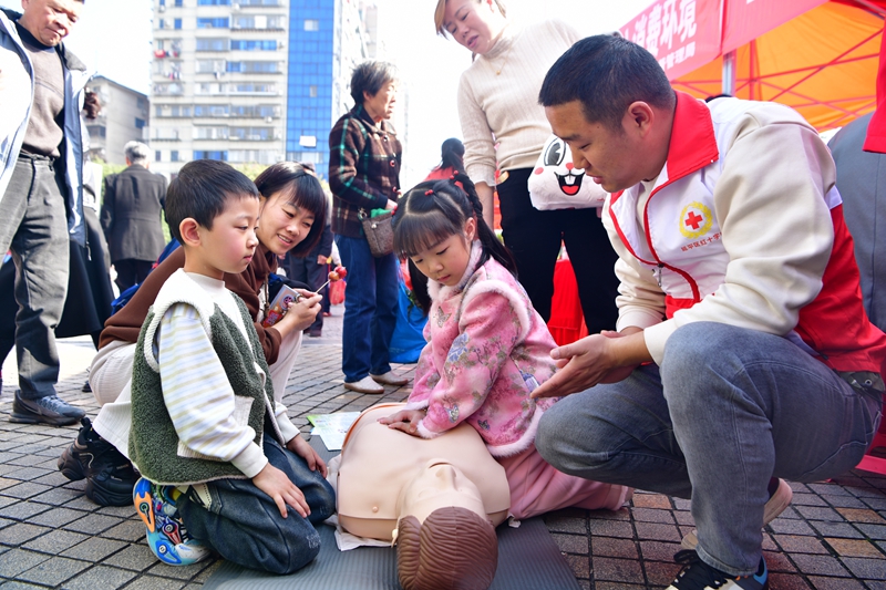 現場教授心肺復蘇 游立成 攝 現場還舉行了文藝表演,南詞演唱《大美南平》以悠揚旋律展現閩北山水之美,詩朗誦《雷鋒之光 志愿之魂》道出志愿精神薪火相傳,音樂快板《移風易俗樹新風》以通俗易懂的方式傳遞時代新風,宣講表演《文明出行 平安歸來》增強全民交通安全意識……一個個精彩節目贏得觀眾陣陣掌聲。