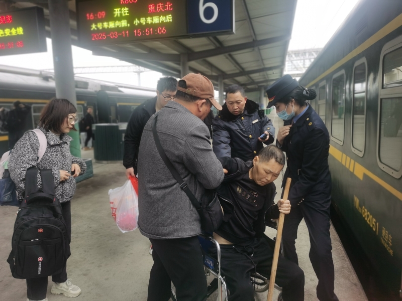 救助現(xiàn)場 關(guān)紅 攝 經(jīng)確認,該男子因突發(fā)疾病被困,已數(shù)日斷水斷糧,身體嚴重虛弱并伴有多種疾病。志愿者們立即啟動應(yīng)急救援機制,聯(lián)動區(qū)救助、醫(yī)療等部門,救助服務(wù)中心主任等緊急趕往事發(fā)地,經(jīng)現(xiàn)場商議,先為被困者進行水分補充,再用流質(zhì)食物補充身體能量,歷經(jīng)2個多小時,終于成功將被困人員救出涵洞。“能活著真好……”這是楊某被抬出涵洞時說的第一句話。 救治:168小時的生命護航 進入?yún)^(qū)救助服務(wù)中心時,楊某因多日滴水未進,身體極度虛弱,在征求其入院治療意見未果后,區(qū)救助服務(wù)中心征詢了醫(yī)生的建議,每天為楊某定制康復(fù)膳食,并針對其所患疾病制定詳細的醫(yī)治方案,通過“流浪乞討人員救治綠色通道”進行感染、營養(yǎng)科等多學科會診,經(jīng)過工作人員和志愿者多日的悉心救治和護理,楊某的病情逐漸趨于穩(wěn)定,健康狀況好轉(zhuǎn)。 社工志愿者還攜帶理發(fā)工具到救助站,為其修剪頭發(fā)、剃須,清理個人衛(wèi)生。為幫助楊某克服恐懼心理,社工心理咨詢專業(yè)人員對其進行創(chuàng)傷后心理干預(yù),通過心理疏導(dǎo)、精神撫慰、情緒溝通等方式,消除了被救助者的心理戒備。 歸途:跨越千里的溫情護送 3月11日下午,一場特殊的返鄉(xiāng)行動在區(qū)救助服務(wù)中心正式啟動。服務(wù)中心為被救助者免費備好行裝、購好了返鄉(xiāng)車票,備足路上服用的應(yīng)急藥品,因被救助者楊某無法自主行走,救助服務(wù)中心、社工志愿者組成4人小組全程護送返鄉(xiāng)。在南平市高鐵站,車站不僅提供了輪椅,還迅速將乘客信息傳送至中轉(zhuǎn)站上饒火車站,請求上饒站提供幫助。列車駛?cè)肷橡堈緯r,站臺早已等候的志愿者推著加寬輪椅,在G1486列車長、乘務(wù)員協(xié)助下,與護送小組無縫對接。上饒站乘務(wù)員得知需轉(zhuǎn)乘K805列車時,主動在前引路,并協(xié)助抬舉輪椅上下階梯。在秀山火車站,輪椅早早就等候在站臺,車站值班員鄧倩特意開啟了綠色通道……鐵道線上的愛心接力,每一站都是溫暖的港灣,讓列車成為流動的“生命方舟”。