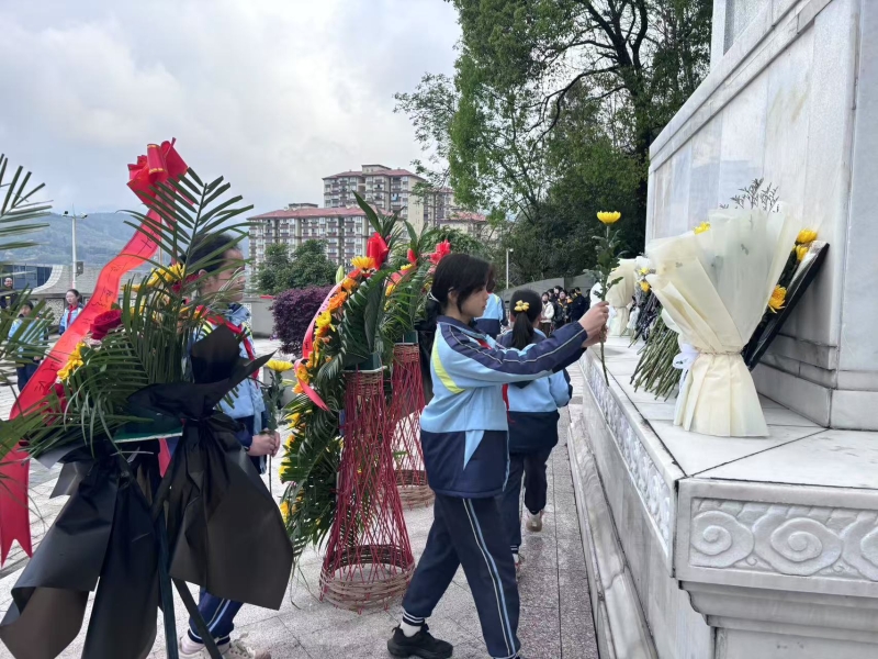 順昌縣“賡續(xù)·2025·百園千校清明祭英烈”啟動儀式上向先烈敬禮 韓慧 攝 上午9時,啟動儀式正式開始,順昌縣龍山烈士紀(jì)念碑巍然矗立,碑體正面“革命烈士永垂不朽”八個鎏金大字在陽光映照下熠熠生輝。在重溫入隊、入團(tuán)誓詞、奏唱國歌后,全體人員懷著崇敬之心向烈士默哀并依次手捧鮮花走向烈士紀(jì)念碑,順時針緩步繞烈士紀(jì)念碑一圈,瞻仰烈士紀(jì)念碑,表達(dá)對英烈的緬懷之情,厚植愛黨愛國的情懷。