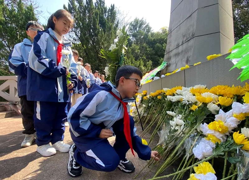 學生們向革命烈士敬獻鮮花 王曉云 攝 少先隊員重溫入隊誓詞,堅定為共產主義事業貢獻力量的理想信念;書寫寄語卡片,表達繼承先烈遺志、努力奮斗的決心;講述先烈故事,從英勇事跡中汲取前行力量。全體瞻仰烈士紀念碑并繞碑一圈,近距離感受先烈精神。 此次活動旨在激勵廣大師生積極投身緬懷革命先烈活動,通過學習感悟革命精神,接受革命傳統和紅色文化教育。同時,充分發揮紅色教育主陣地作用,讓紅色基因融入血脈、代代相傳。(邵武市委文明辦 聶婷婷) |