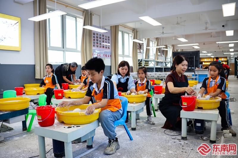 浦城縣實驗小學邀請浦城大口窯青白瓷制作技藝代表性傳承人熊文慧、熊文杰團隊定期授課。東南網記者 鄭正華 攝 “學校青白瓷社團以‘瓷韻潤德,節氣育人’為宗旨,通過‘瓷土塑形、節氣賦魂、德行入心’三維育人模式,達成‘塑瓷器·冶情操·傳文明’的立體化育人目標。”浦城縣實驗小學校長黃豐雷說,學生在活動中不僅掌握了陶藝技能,還提高了審美能力和文化素養。同時,陶藝課程還激發了學生的學習興趣和創造力,促進了他們的全面發展。 據介紹,該校采用“非遺傳承人+專業教師”雙師制,邀請浦城大口窯青白瓷制作技藝代表性傳承人熊文慧、熊文杰團隊定期授課,確保技藝傳承的規范性。截至目前,每周參與學生300余人次,形成了濃厚的陶藝文化氛圍。 “我們用故事化教學引入青白瓷歷史,感受非遺魅力;通過分層教學,讓每個孩子都能找到參與感、體驗感和滿滿的成就感。”熊文慧在談到設計浦城大口窯青白瓷制作技藝課的核心思路時表示,課程設計以“從興趣啟蒙到深度體驗”為邏輯,低齡段側重趣味互動,中高年級段主要是動手能力、專注力、想象力的培養。 同時,學校創新地將傳統技藝與現代科技結合,開發了圖文并茂的校本教材并制作了3D制瓷工藝動畫。學生通過設計專屬瓷碗、杯子、花瓶,從拉坯、雕刻到燒制全程參與,最后用AR技術模擬窯變效果,幫助學生直觀理解陶藝,既傳承非遺,又培養了創新思維。