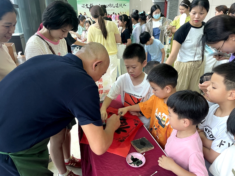 文明素質(zhì)趣味游戲活動(dòng) 湯維明 攝 活動(dòng)現(xiàn)場(chǎng),孩子們獻(xiàn)上了傘技表演《竹韻傘舞 情滿建州》、快板節(jié)目《家風(fēng)禮韻頌甌城》和朗誦《禮行建甌 智惠文旅》,孩子們?cè)诒硌葜姓宫F(xiàn)家風(fēng)文明禮儀,彰顯千年建州的深厚文化底蘊(yùn)。 在非遺體驗(yàn)環(huán)節(jié),家長(zhǎng)與孩子們一同參與建州拓印、漆扇制作和建州宋式點(diǎn)茶活動(dòng),在動(dòng)手實(shí)踐中觸摸歷史、感受匠心。現(xiàn)場(chǎng)還設(shè)置了文明素質(zhì)知識(shí)趣味游戲區(qū),寓教于樂(lè),引導(dǎo)孩子們從小樹(shù)立文明意識(shí)。