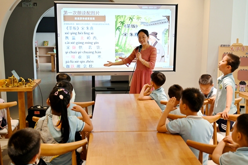 活動現場 黃慧聰 攝 活動現場,特別邀請了建陽區老年大學文學誦讀表演班教師柴玉霞,以專業的文學素養與豐富的教學經驗,為孩子們搭建起與古代文人對話的橋梁。在柴老師聲情并茂的示范引領下,孩子們稚嫩而堅定的童聲回蕩在書吧中,齊聲誦讀朱熹的經典詩作《茶坂》。“攜籯北嶺西,采擷供茗飲”,一句句詩詞如茶香般沁人心脾,孩子們仿佛穿越時空,與古人一同領略茶香韻味,感受古人對茶的喜愛與獨特情懷。 誦讀結束后,柴玉霞老師化身茶文化“引路人”,通過生動形象的講解與實物展示,將茶葉從采摘、萎凋、揉捻到干燥的復雜制作過程,轉化為通俗易懂的知識傳遞給孩子們。孩子們睜著好奇的大眼睛,不時提出疑問,現場互動氛圍熱烈。在品味環節,漳墩白茶淡雅的茶香裊裊升騰,孩子們在老師的指導下,輕輕端起茶杯,細細嗅聞茶香,緩緩抿上一口,感受白茶的甘醇在舌尖散開,從視覺、嗅覺、味覺多維度深度體驗茶文化的魅力。 此次“朱子學堂進社區”活動,以誦讀為引,以茶香為媒,通過多元形式帶領小朋友們從詩詞、工藝、品鑒等不同角度深入了解、認識、感受茶文化,讓傳統文化的種子在孩子們心中生根發芽,在茶香裊裊中感悟中華民族傳統文化之美,為社區文化建設增添一抹亮麗的色彩。(崇泰街道 黃慧聰) |