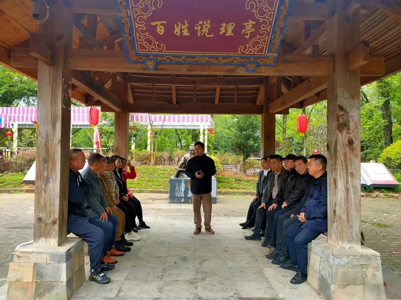 2023年1月18日,湖頭村新時代文明實踐站在百姓說理亭開展理論宣講活動。小松鎮湖頭村供圖 “紅馬甲志愿者”年均開展理論政策宣講、朱子文化傳承、禁毒反詐教育、巾幗環保行動、文明旅游倡導、非遺美育課程等各類文明實踐活動百余場。充分發揮國家3A級景區生態與古民居、土主廟、藏金亭等特色資源,與福州大學、廈門工藝美院等6所院校共建“楓丹白露”寫生基地,掛牌廈門大學藝術學院教學實踐地,吸引范迪安等近30位著名藝術家駐創。