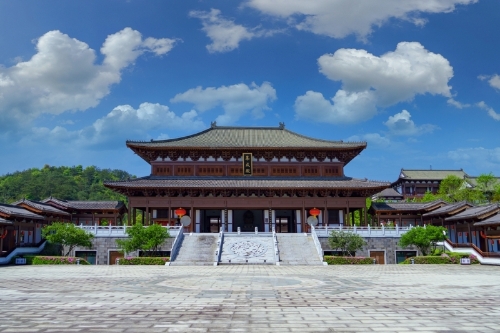 考亭書院集成殿 陳琦輝 攝 此后,考亭書院不斷重修重建,2012年秋,建陽市制訂了重建考亭書院的規劃。2017年夏正式開工建設,主體工程2018年秋建成,2019年秋,一期工程竣工并對外開放。總體規劃占地面積230畝,總投資1.8億元,完成的第一期工程為60畝,總投資1.21億元。東西走向的中軸線上,以嘉靖辛卯(1531)所建的考亭書院古牌坊為起點,依次新建滄洲精舍門樓、道原堂、集成殿、慶云樓;南面建勉齋堂;北面建燕居堂、清邃閣,為展示區、研學區。集成殿的負一層VR場景體驗中心、學術報告廳作為開展各類教育培訓的場所。 |