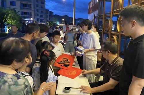 現(xiàn)場送福 在“黨建紅”引領“助農紅”的特色攤位區(qū),幸福里老人自種的蔬菜鮮翠欲滴,周邊農戶種植的陽光玫瑰、西瓜、油奈、桃子等水果香氣撲鼻,似把一整幅豐收田園搬到渠畔。這些農產品承載著村民的辛勤汗水,更傳遞著濃濃的鄰里溫情。本土品牌的每一枚果實、每一片葉子,都寫著汗水,也寫著鄰里互贈的暖意。 除了豐富的商品展銷和閑置物品置換,長城村愛好樂器的大爺們組成臨時“樂隊”,帶來了一場充滿鄉(xiāng)土氣息的 “鄉(xiāng)村音樂會”,悠揚旋律為集市增添了別樣韻味。 活動期間,石屯鎮(zhèn)綜治中心、電信公司、泰隆銀行等單位的工作人員在現(xiàn)場開展“平安三率”、金融反詐等宣傳,將服務與知識送到群眾身邊。縣委黨校則為來往群眾免費送“福”,并發(fā)放《政和美食》《時代楷模廖俊波干部學習讀本》《佛子山》文學期刊,讓文化氣息浸潤集市。