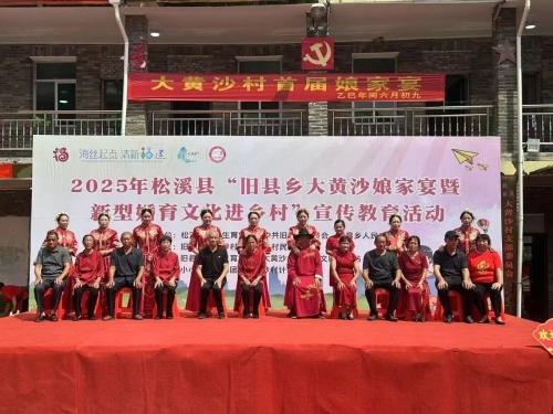 菇民戲《婆媳怨》 真魏皓 攝 8月2日,一場以“娘家宴暨新型婚育文化進鄉村”為主題的宣傳教育活動在松溪縣舊縣鄉大黃沙村熱鬧開啟。這場集民俗傳承與政策宣傳于一體的活動,不僅洋溢著濃濃的溫情,更成為抵制高額彩禮、倡導文明婚俗的宣傳陣地,文明新風尚在歡聲笑語中深入人心。 活動現場人頭攢動,身著秀禾服、旗袍等服飾的“娘子軍”款款走來,她們手持 “山是家鄉美,水是故鄉甜”“感恩娘家,共思鄉情” 等字樣的標牌,字里行間滿是對故土的眷戀。嗩吶聲中,村民們紛紛為回門的“女兒們”送上真摯祝福,一張張笑臉綻放著淳樸的喜悅。 “大黃沙村每逢農歷閏月,家家戶戶都有辦娘家宴的習俗,今年是我們村第一次集體舉辦娘家宴。” 舊縣鄉大黃沙村村書記主任陳邦武笑著介紹。 “在今年的一次吃茶話事中,有村民提議可以集體舉辦娘家宴,大家都覺得這個想法很好,都很支持,我們村兩委也積極主動聯系鄉賢和外嫁的姑娘們,村民們有錢出錢有力出力,大家都很愿意把我們當地的民俗宣傳出去。”舊縣鄉黨委委員、紀委書記池婧雯表示。 舞臺上,方言小品《回娘家》、菇民戲《婆媳怨》等獨具地方特色的節目輪番上演,贏得滿堂喝彩。活動中精心安排的奉茶儀式,姑娘們躬身為雙親奉上一杯熱茶,在茶香中將傳統回門文化的韻味娓娓道來,讓在場者深切感受民俗傳承的力量。